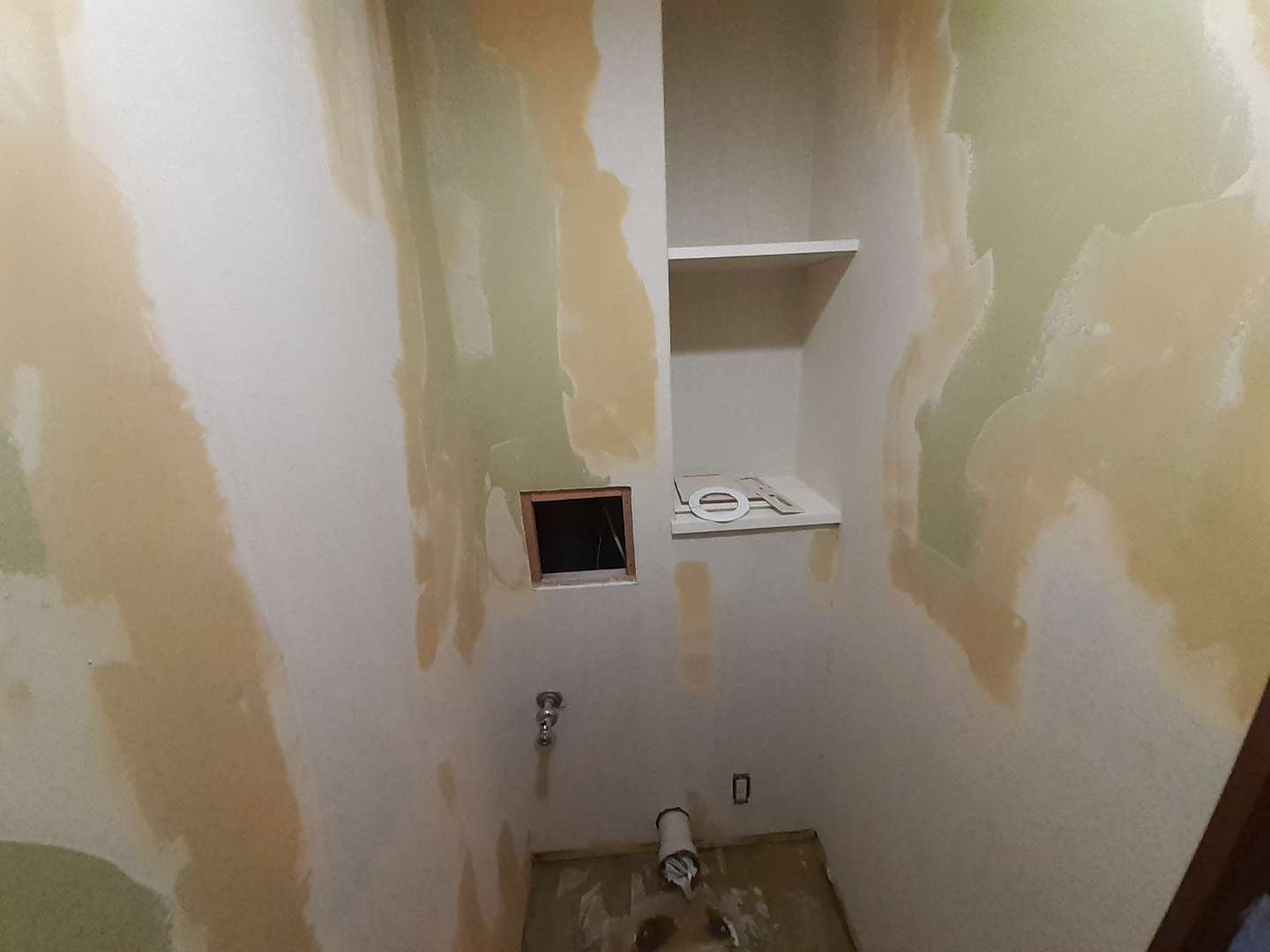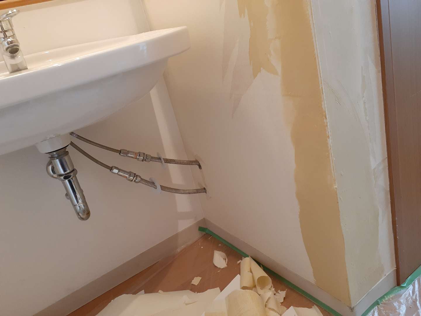 朝からのマンショントイレは設備屋さんが段取りよく便器を外してくれて、早く仕事にかかれました。