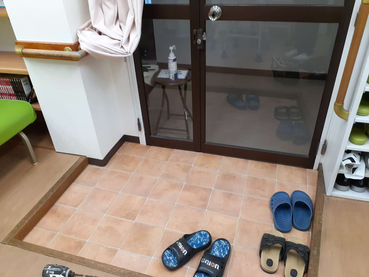 入り口土間もテラコッタ調の土足用のCFシートに張り替えてひときわ明るい印象になりました。