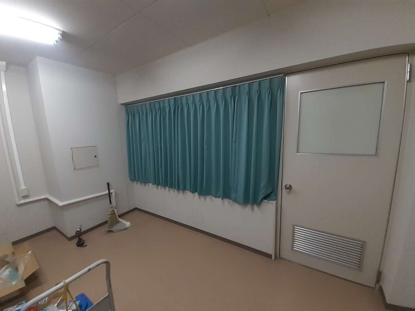 先月体育館のカーテン取り付けさせて頂いた熊取町の高校の追加工事で、個別面談室のカーテン取り付けに行きました。