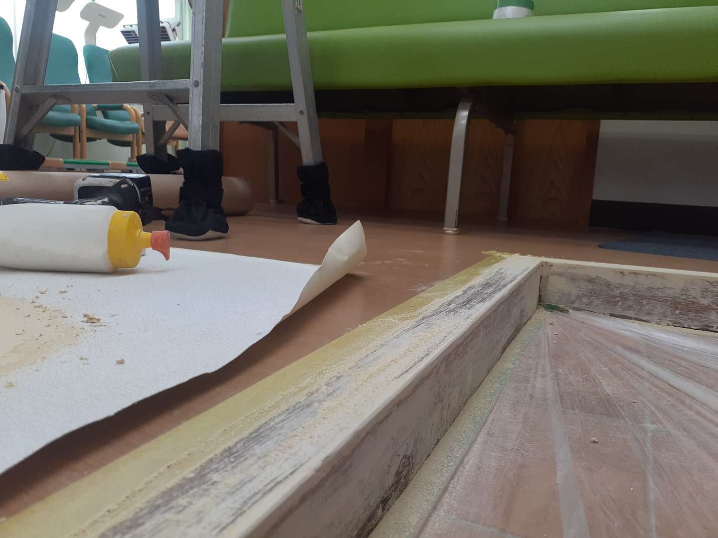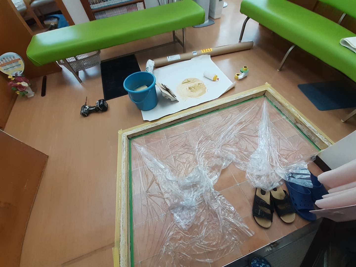 今日はお盆から工事させて頂いていた整骨院さんの工事で、ロールスクリーン2台取り付けと玄関の上がり框のフィルム貼りに伺いました。