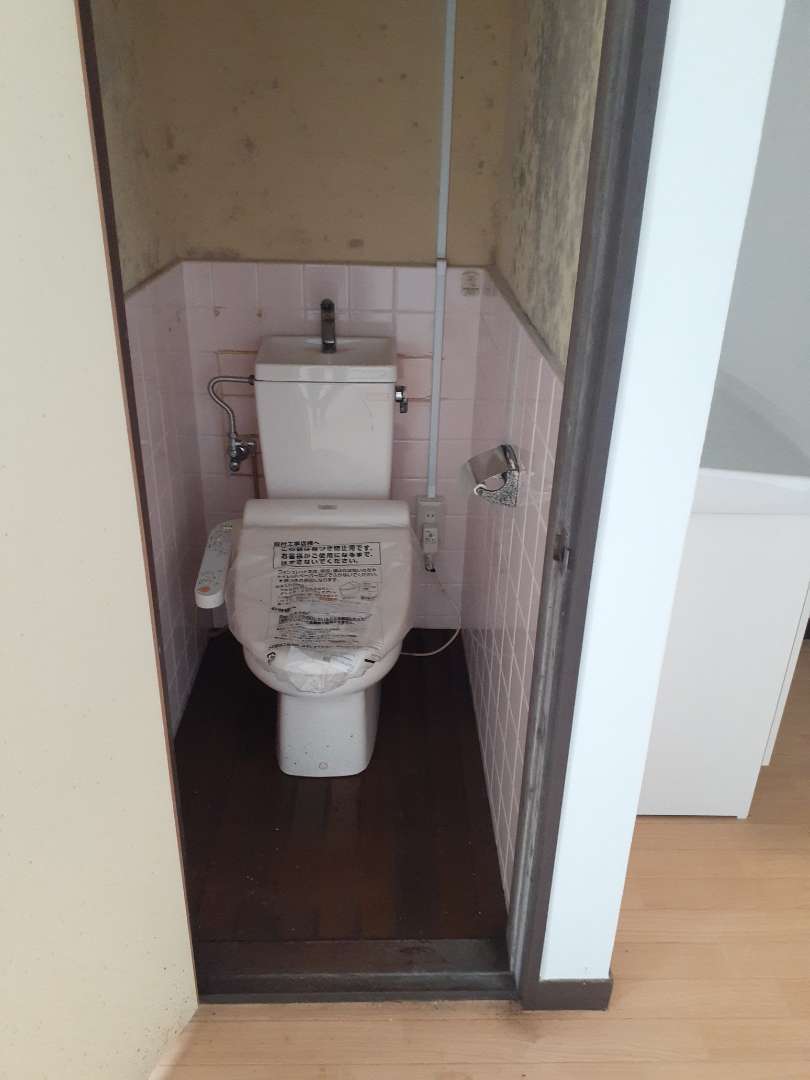 トイレのカベが塗り壁でカビがすごいことなっていて、これをクロス貼って床はCFシート張ってきれいにしてくれって事です。